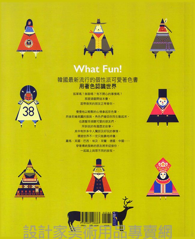 那麼請翻開這本書。 面帶微笑的朋友正等著你。 充滿個性的特別畫風,讓人一看就忍不住大呼:好可愛! 來自韓國最新最流行的全新風貌著色書《PlayWorld》 不僅讓你透過替書中可愛朋友們著色的過程,紓解惱人的壓力、療癒心靈。 另外一方面,在開心進行著色的同時,也輕鬆愉快的進入世界各地不同朋友們的故事。 請豎耳傾聽地球村朋友們, 輕聲細語訴說的故事! 你知道牛仔原來只是負責趕牛的「打工一族」? 舉世聞名的科學家愛因斯坦,罹患嚴重胃病的真正理由是? 維京人不只在大海,連在陸地上也會抬著船直搗敵陣,是非常可怕的盜賊集團? 棒球聽說是差點失傳的運動…… 除此之外書裡還有許多有趣的歷史故事。 現在就拿起你的蠟筆或彩色鉛筆,翻開書~ 開始一邊愉快的著色,一邊幫這些訴說有趣故事的朋友們, 穿上華麗且漂亮的彩衣吧。然後對著他們說說話。 有著各種表情,穿著華麗傳統服飾和職業特色的角色們, 在你的巧筆下將栩栩如生。 環遊世界不一定只能靠地球儀, 羅馬、英國、巴西、埃及、荷蘭、德國、韓國…… 穿著傳統服飾的朋友將來迎接你, 一起踏上與眾不同的旅程。 對了,也別忘了隱藏在各處的美麗花朵和動物, 以及小巧可愛的飾品。 你會在不知不覺間環遊了世界, 和大家成為好朋友。 |