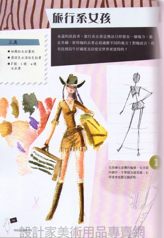 對整體有了概念,最後教導大家從經典的潮流風格(迪斯可、巴洛克、龐克…),並整理出1910-2000年間的時裝流行風格,學著找出致成流行的關鍵,畫出屬於自己的時裝圖。 |