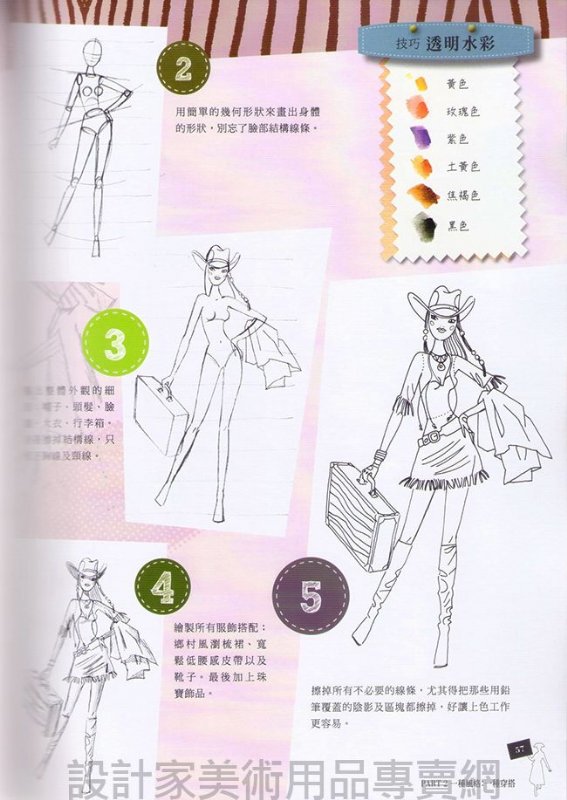 每一風格從最基本的素描、身體比例劃分、到上色,都有詳細的材料、顏料說明,並附上圖文步驟解說。