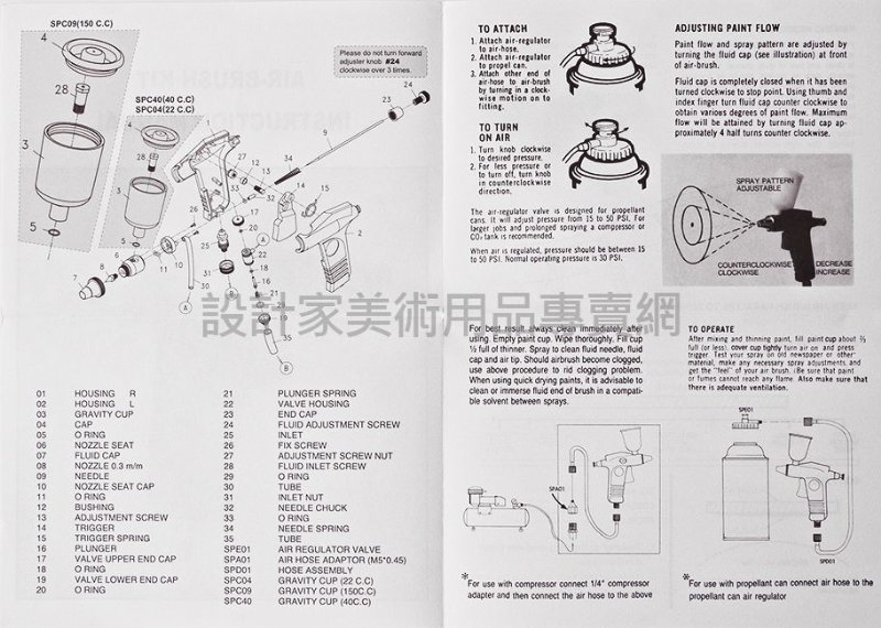 ● 內容:噴槍、3/4盎司顏料瓶、氣管、轉接頭