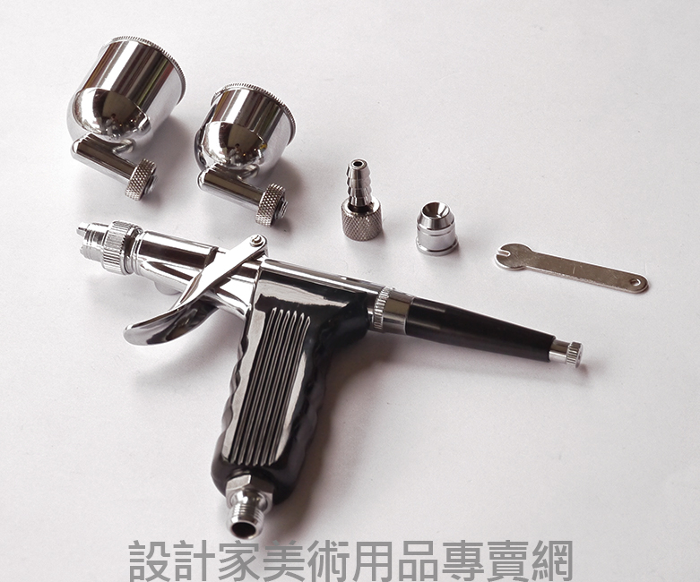 配備齊全,適用於大型作品的創作.口徑較大為 0.5mm,較不易堵塞槍嘴,清潔比較容易,油性顏料,釉彩顏料亦可使用.
