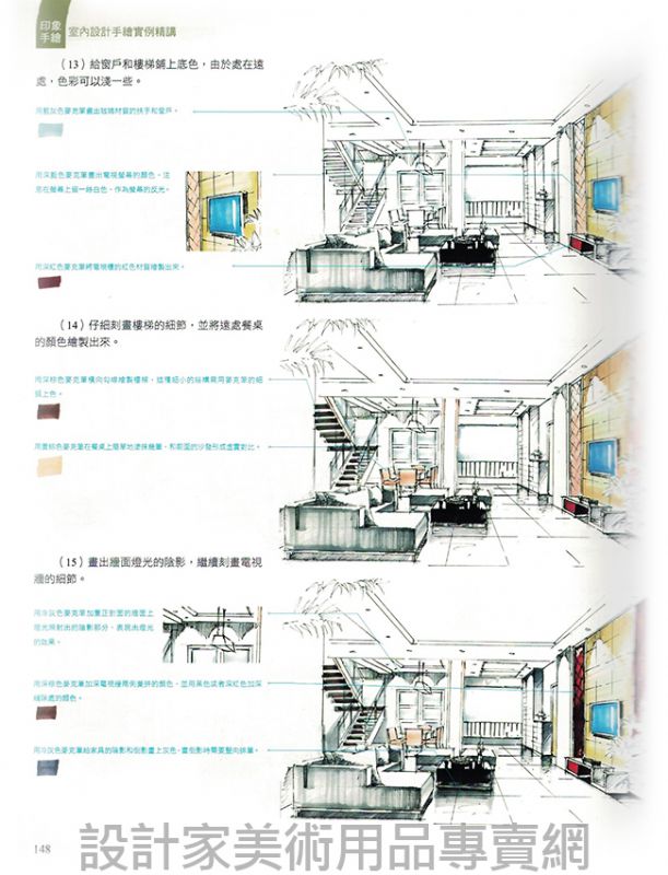 本書適合室內設計專業的學生、室內設計公司的職員、室內設計師以及所有對手繪感興趣的讀者閱讀使用,同時 也可以作為培訓機構的教學用書。