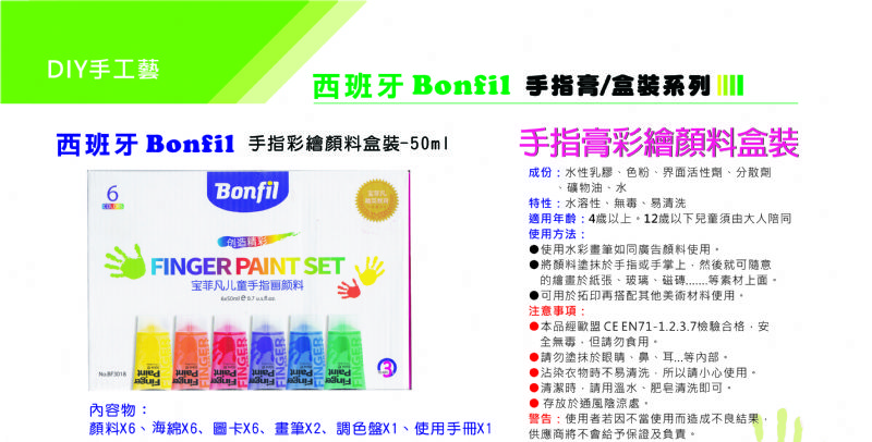 BONFIL手指彩繪顏料 50ml 6色組
