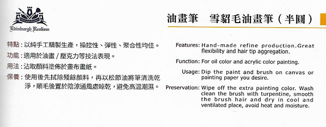 【Edingburgh 愛丁堡】雪貂毛油畫筆E05705 (半圓) #05