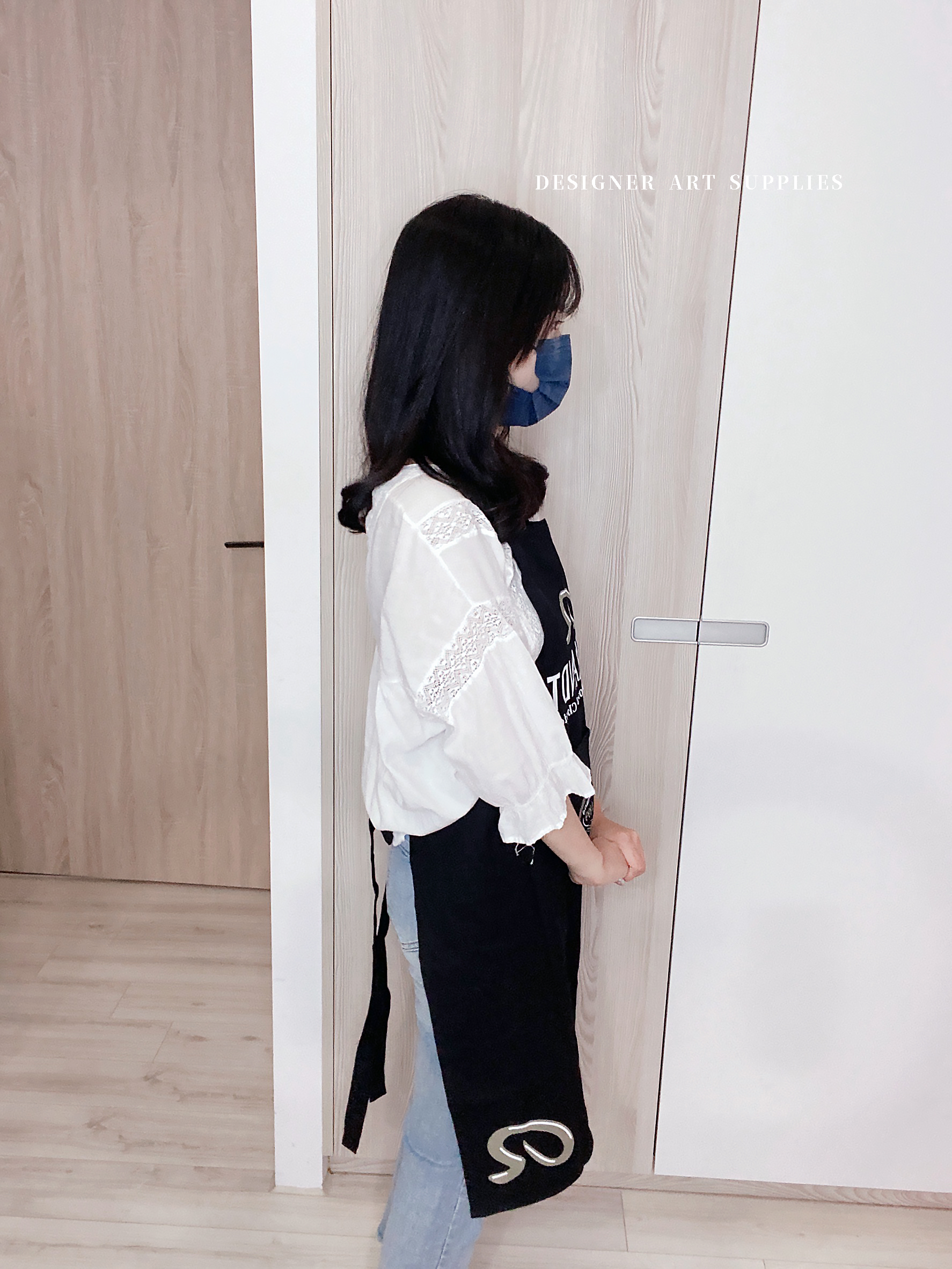 繪畫時,穿上工作服,保護自身衣服不沾染。