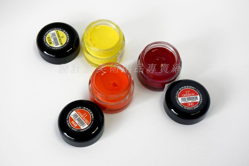 除白、花蕊黃為不透明外,其餘色系皆為透明性質,亦可搭配墨色使用,是台灣藝術大學 蘇峰男老師、國畫名家 吳漢中老師等共同推薦。