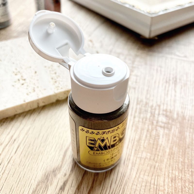 2.先將浮雕粉瓶子搖一搖,在印油未乾之前撒上浮雕粉,並去除多餘的粉末。