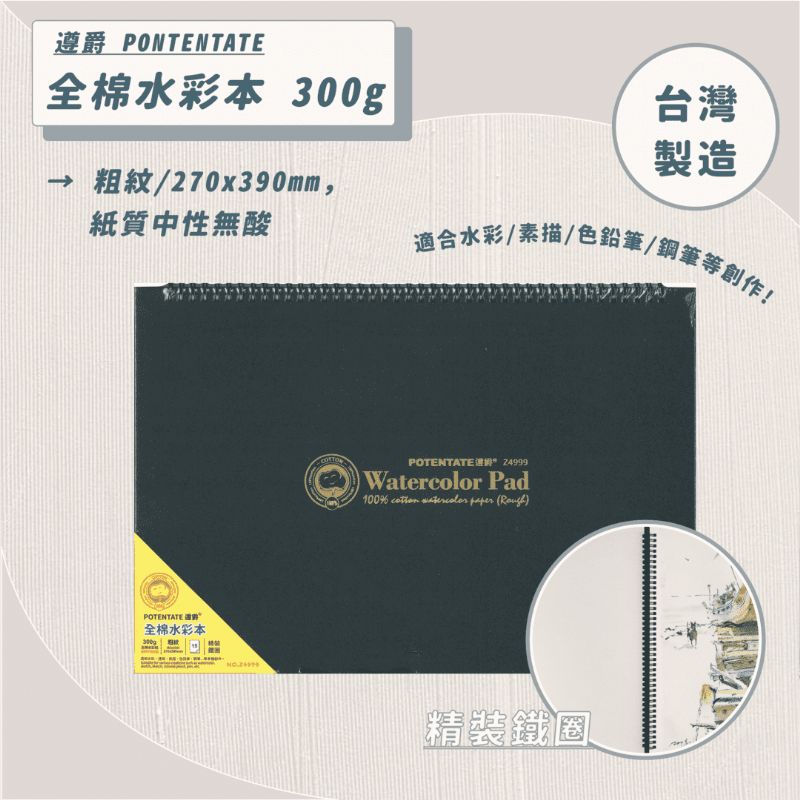 【遵爵】精裝鐵圈全棉水彩本 8K/粗紋/300g/15張