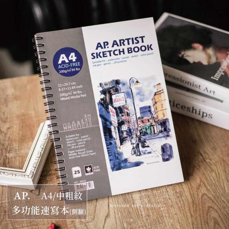 【AP.】多功能速寫本 A4|200g/25張/中粗紋(側翻鐵圈)