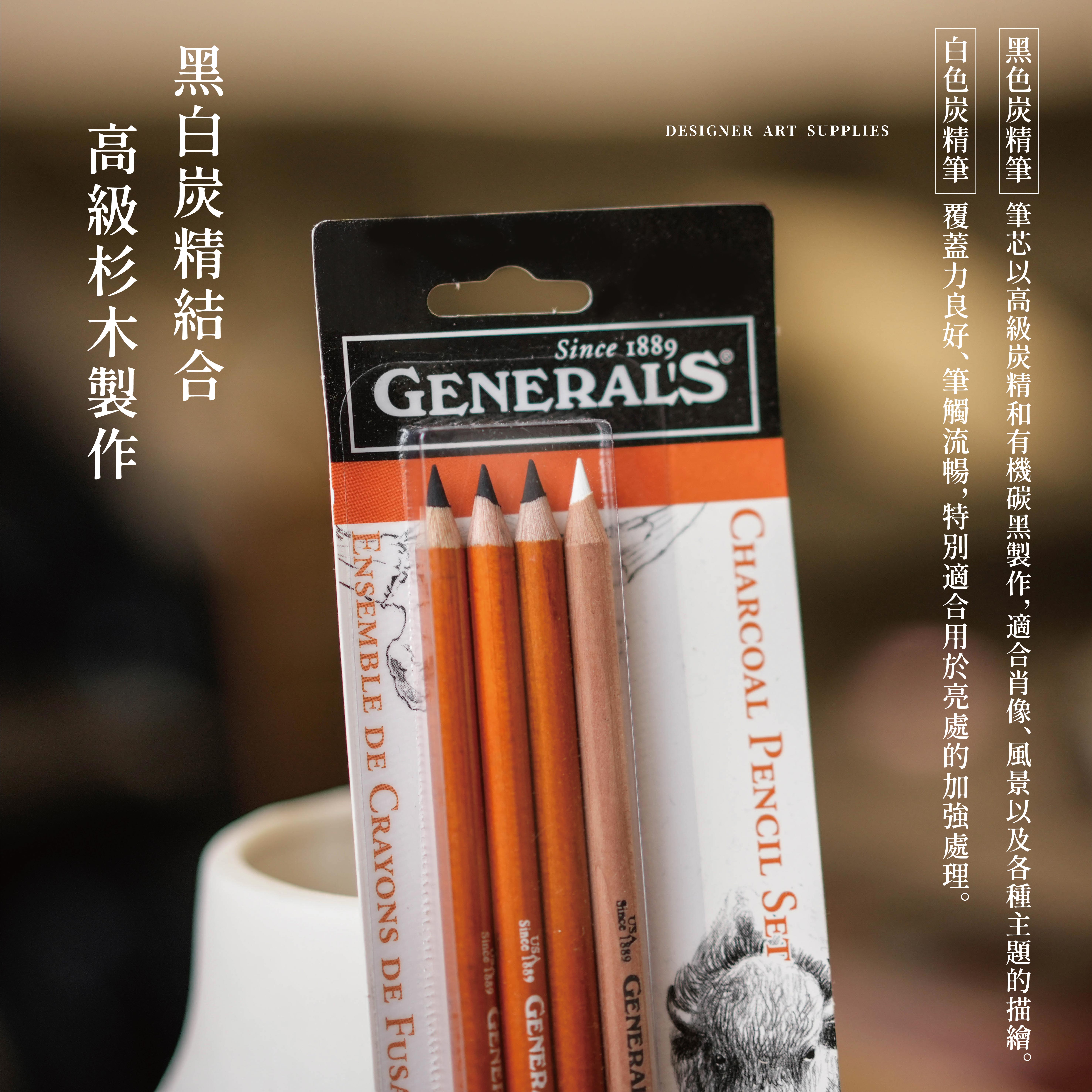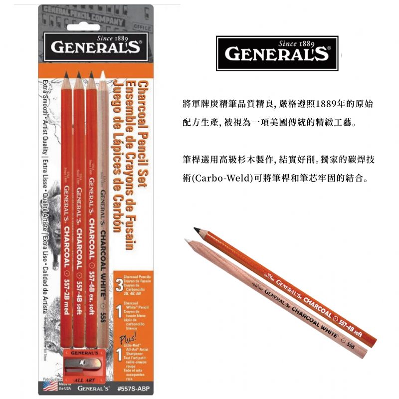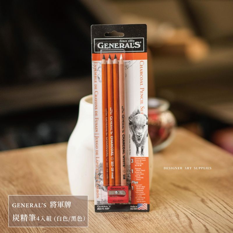 ↓↓ 4支入套組(2B/4B/6B/白)附專用削筆器 ↓↓ - ✦黑色炭精筆✦ 筆芯以高級炭精和有機碳黑製作,畫作完成表面無光澤,筆觸流暢濃黑沉穩,適合肖像、風景以及各種主題的描繪。由深到淺6B/4B/2B/HB。