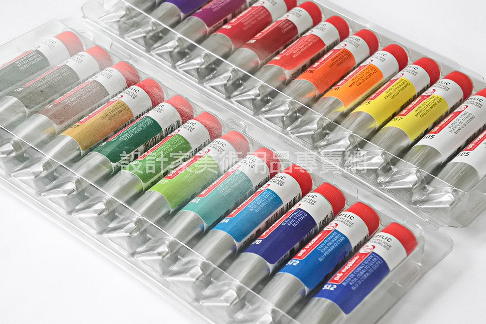 壓克力顏料色澤鮮艷,具有耐光性及抗水性。不會褪色及龜裂,易於保存。