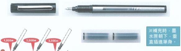 補充時,墨水匣朝下,垂直插進筆身。