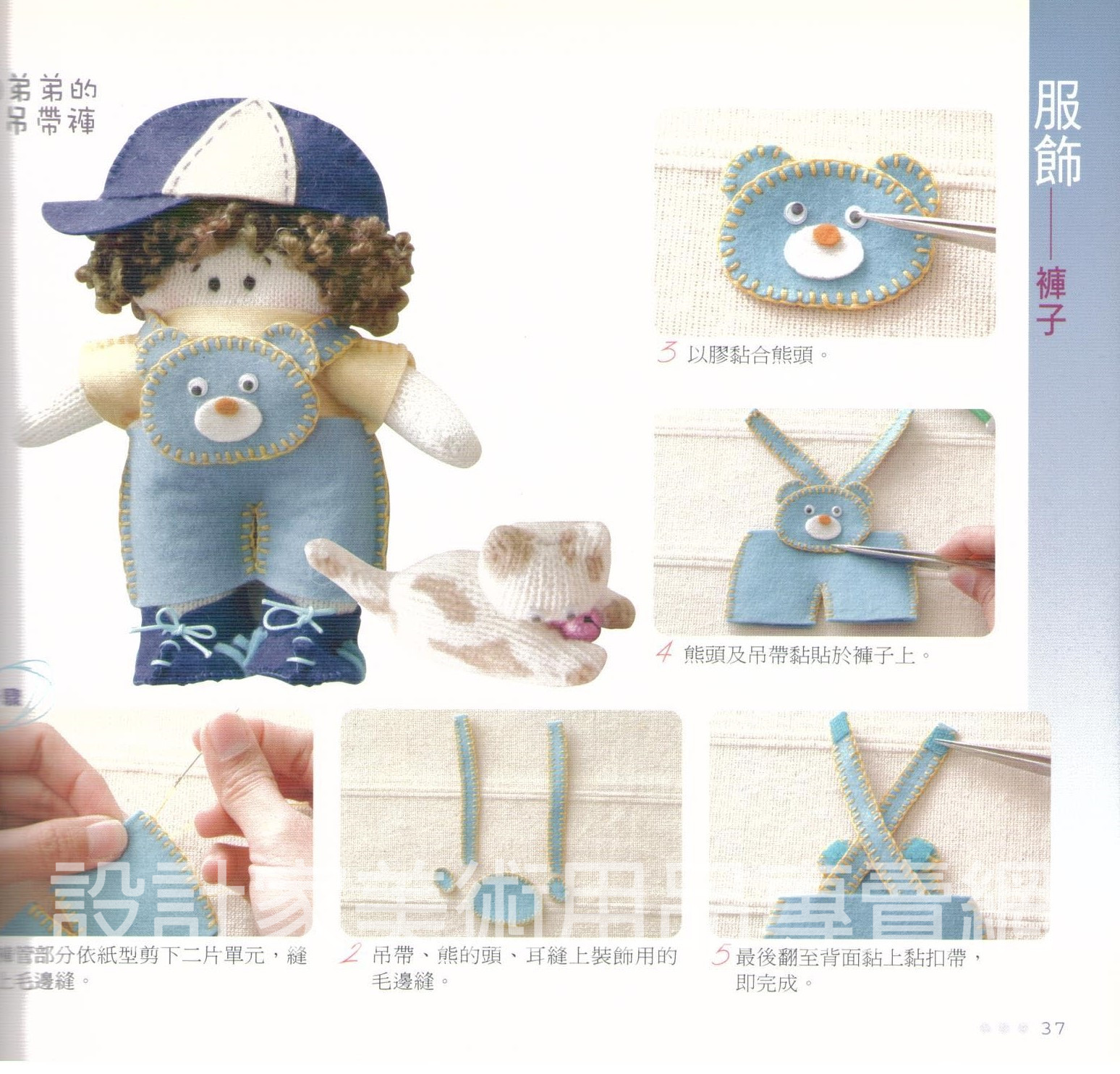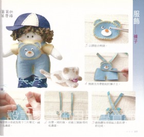 作者運用了不一樣的材質來製作娃娃,驚訝於細質料的工作手套給人在視覺及觸覺上的親和特質,再加上不織布易剪易黏的便利性,以及運用了幾個極易的針法,便能輕鬆地完成換裝形式的娃娃人偶,在紙型之外,亦歡迎你發揮自身的想像力,為你的娃娃設計獨一無二的服裝,或是與自己相似的服裝,那種喜悅是超越文字所能形容的。 |