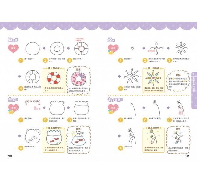 ▪ 利用簡單明瞭的線條,只要3、4、5個步驟,可愛插圖跑出來。